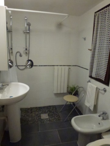 The rooms on the ground floor are ideal for those who have difficulty with stairs. There is a living room, a double bedroom with a private shower room, a single bedroom with an en-suite shower room, and a little kitchen for self service breakfast