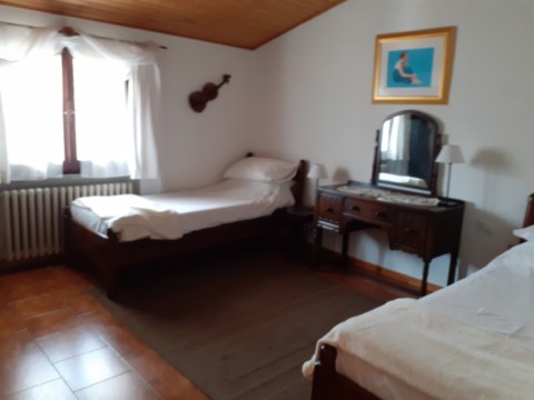The rooms on the ground floor are ideal for those who have difficulty with stairs. There is a living room, a double bedroom with a private shower room, a single bedroom with an en-suite shower room, and a little kitchen for self service breakfast
